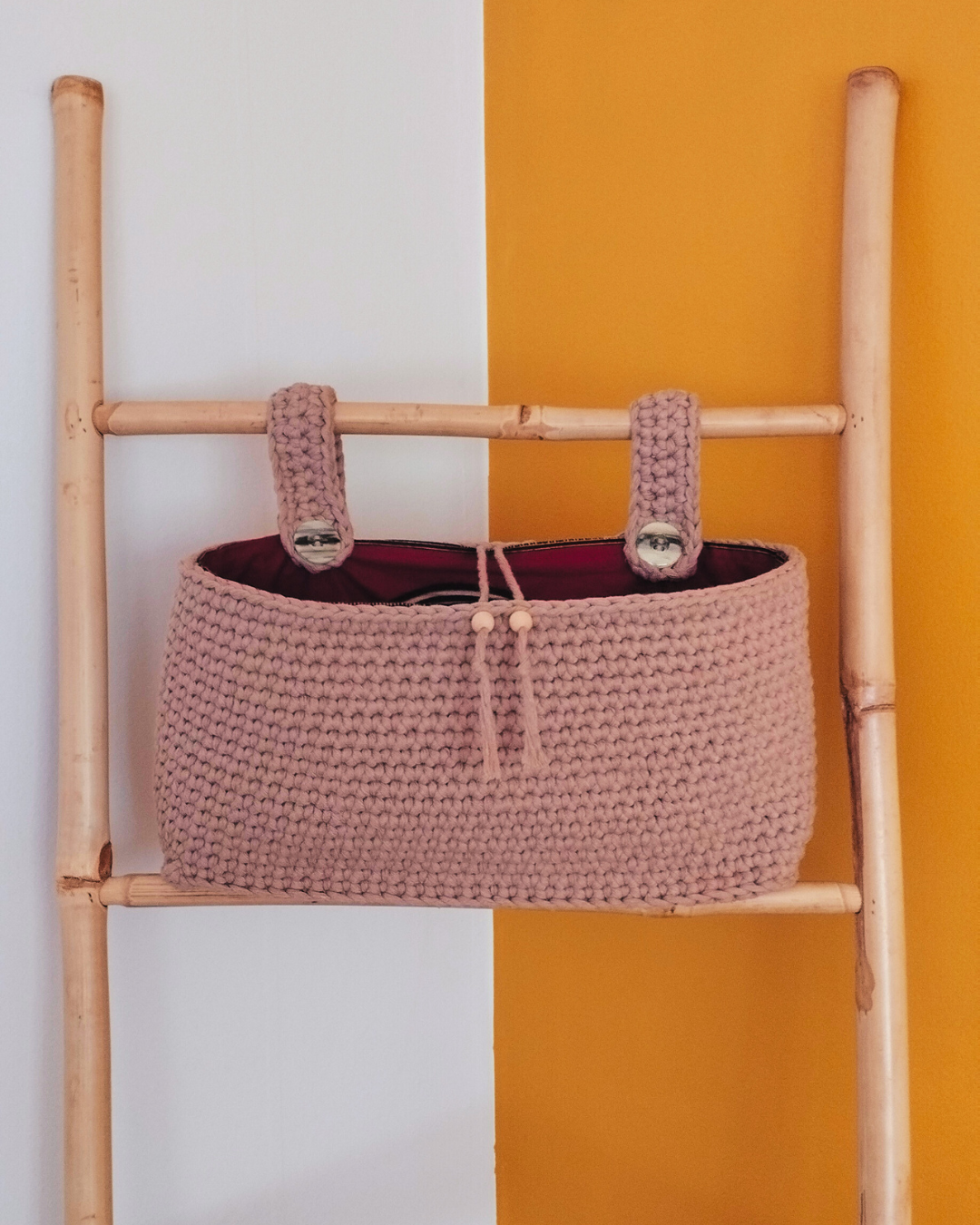 Grâce à ses lanières robustes et ajustables, il s’adapte également à tout autre type de meuble: commode, étagère, barre murale ou table à langer. À la fois décoratif et pratique, il apporte une touche d’artisanat unique dans la chambre de bébé… ou ailleurs !
